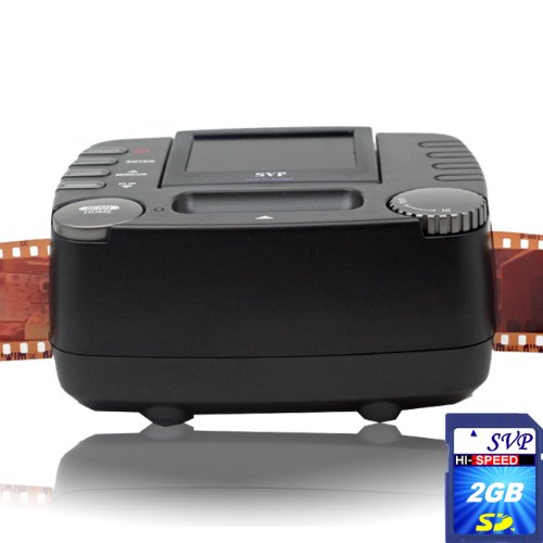 SVP 2-in-1 Film and Slide Scanner FS-1860 is a innovative standalone film scanner that instantly converts 35mm film negatives, slides into digital images without the need for a computer or application software. Now you can preserve all their photo memories by turning the millions of photographs now stored on slides and negatives into digital images to preserve them forever. We have created a very simple-to-use device that works right out of the box and produces a five-megapixel digital image in five seconds at a push of a button. FS1860 does not require a computer or learning a new software program, and it takes very little space to operate, store or transport. You can save your scanned photo directly in the SD card. With its petite size 4.8 inch X3.8inch x2.2 inch and light weight(less than 1 lbs), FS1860 is a perfect portable scanner you can take with you anywhere. Package includes the scanner, 1 holder for individual film, 1 holder for individual strip film, USB cable, power Adaptor, CD(compatible with Operating system Windows XP/Vista/7) and quick guide.SVP FS1860(with 2GB) Black 35 mm negative Film and Slide Scanner with 2.4 inch LCD~ compact size Specifications | Sale - Review & Buy at Cheap Price